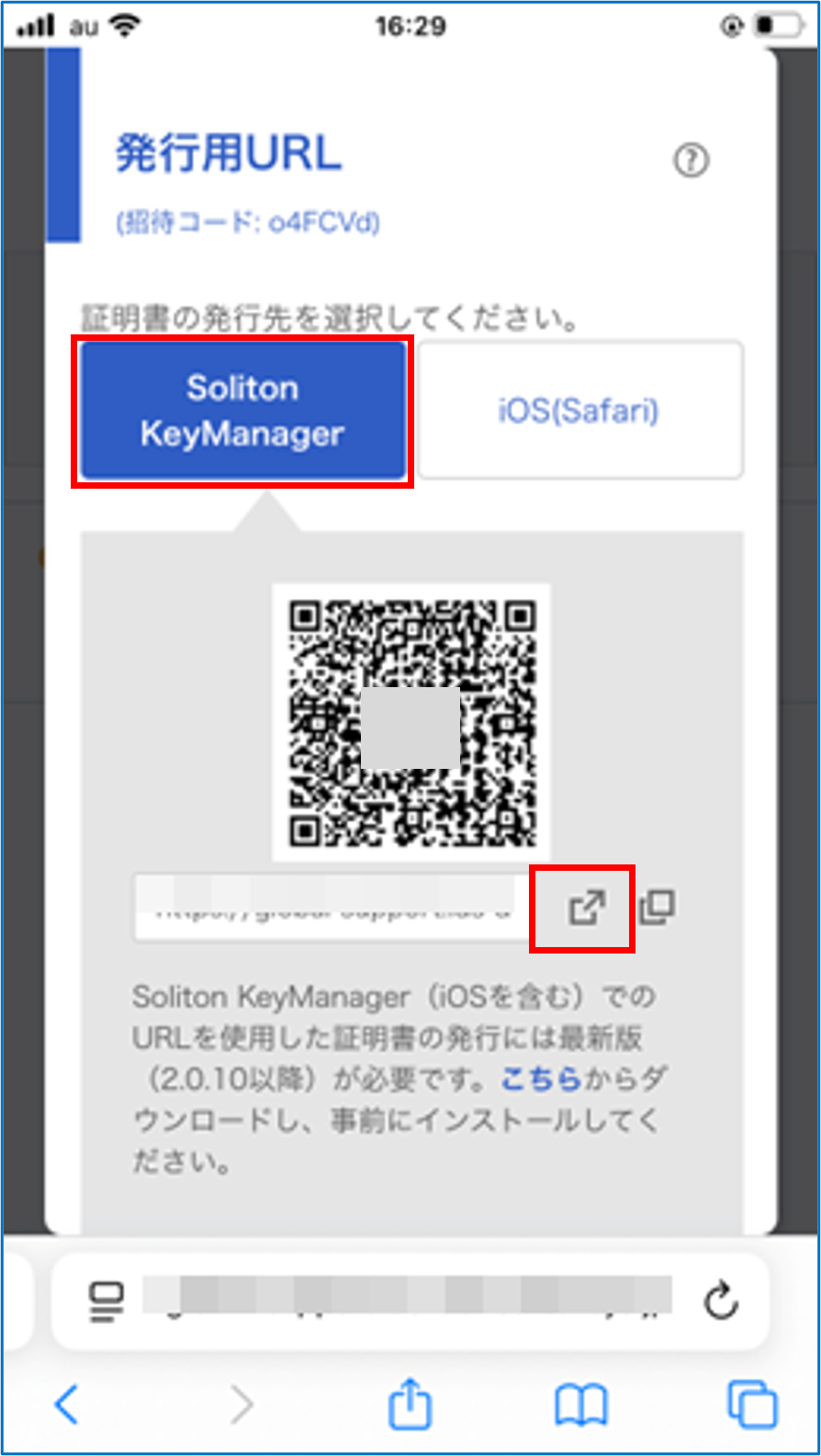 招待メールのURL(QRコード)を利用して証明書をインストールする(KeyManager)