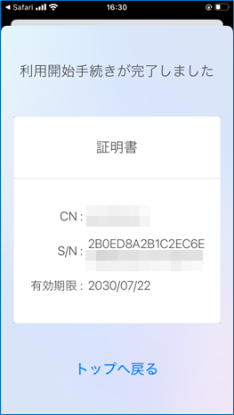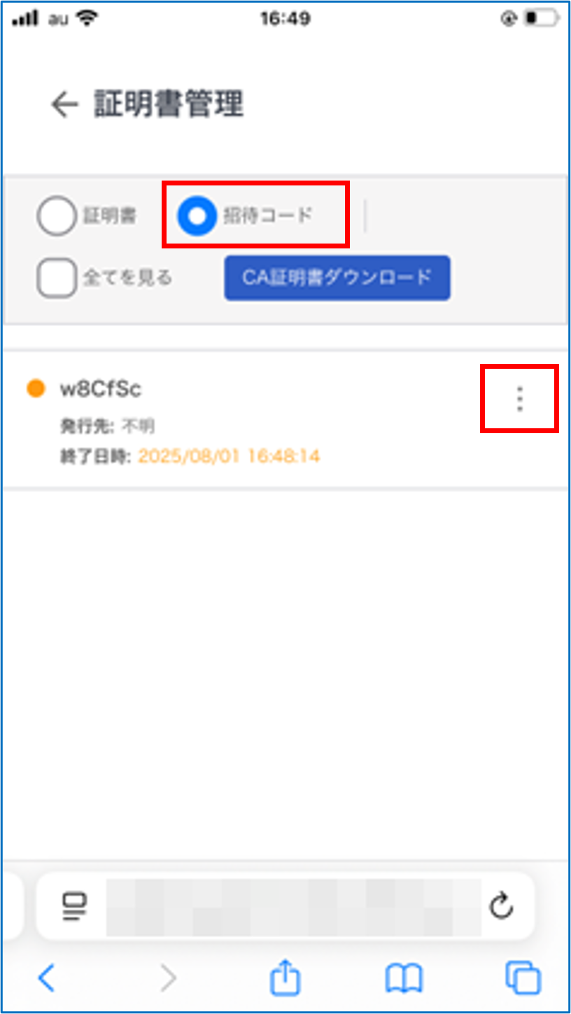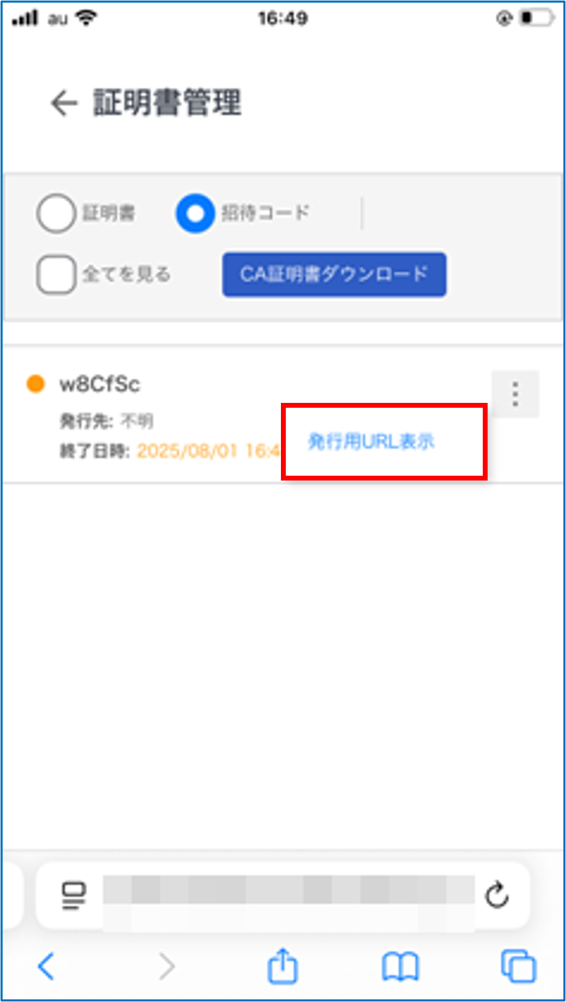 招待メールのURL(QRコード)を利用して証明書をインストールする(Safari)