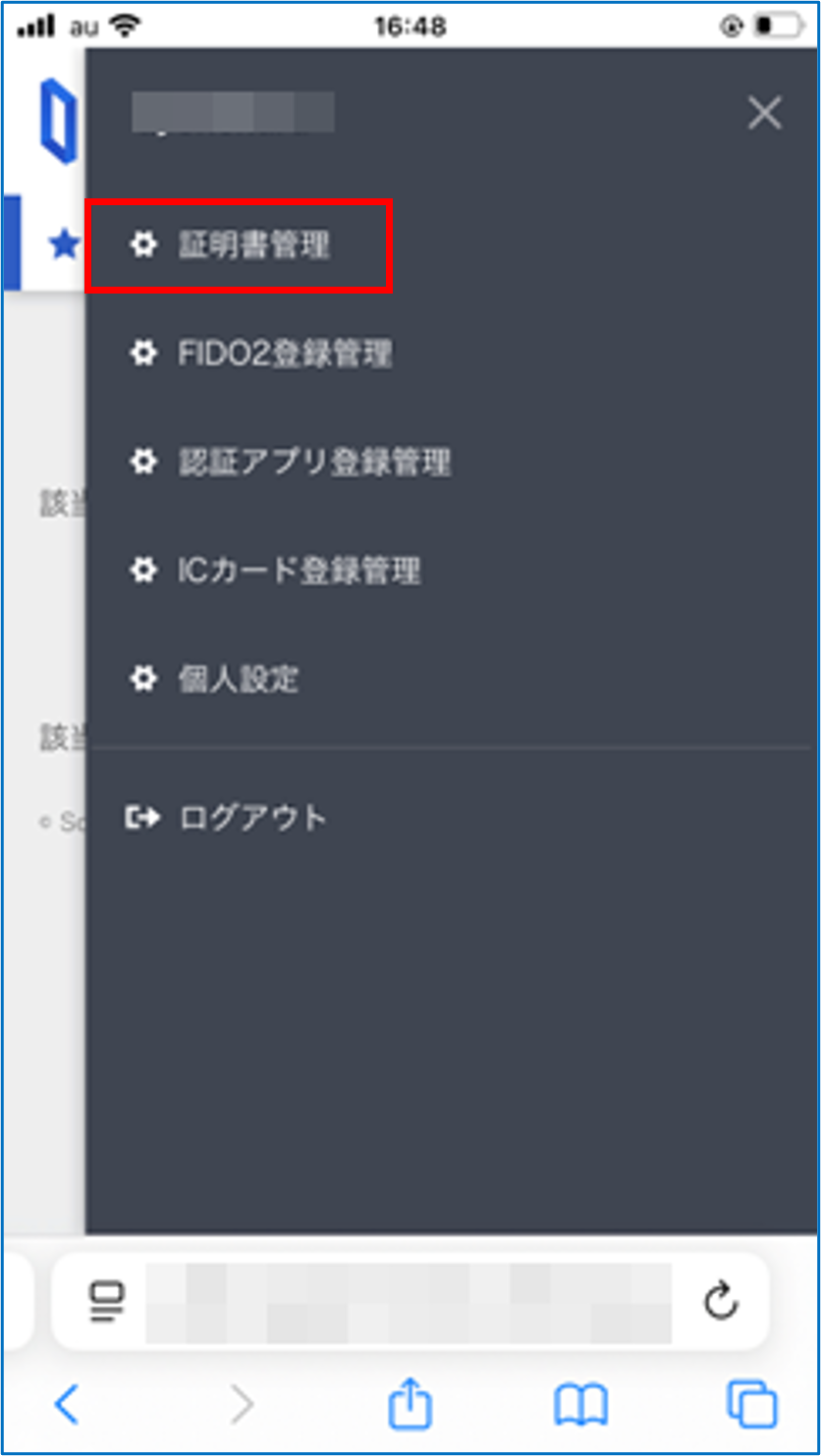 [証明書管理]をタップする