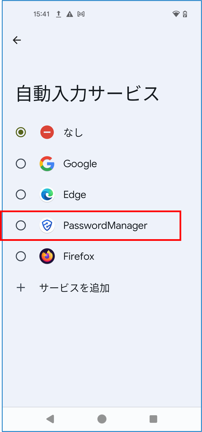 OneGateとの同期を実行し、管理者や利用者ご自身で追加した代理入力サインオン設定をAndroid版PasswordManagerに反映します。