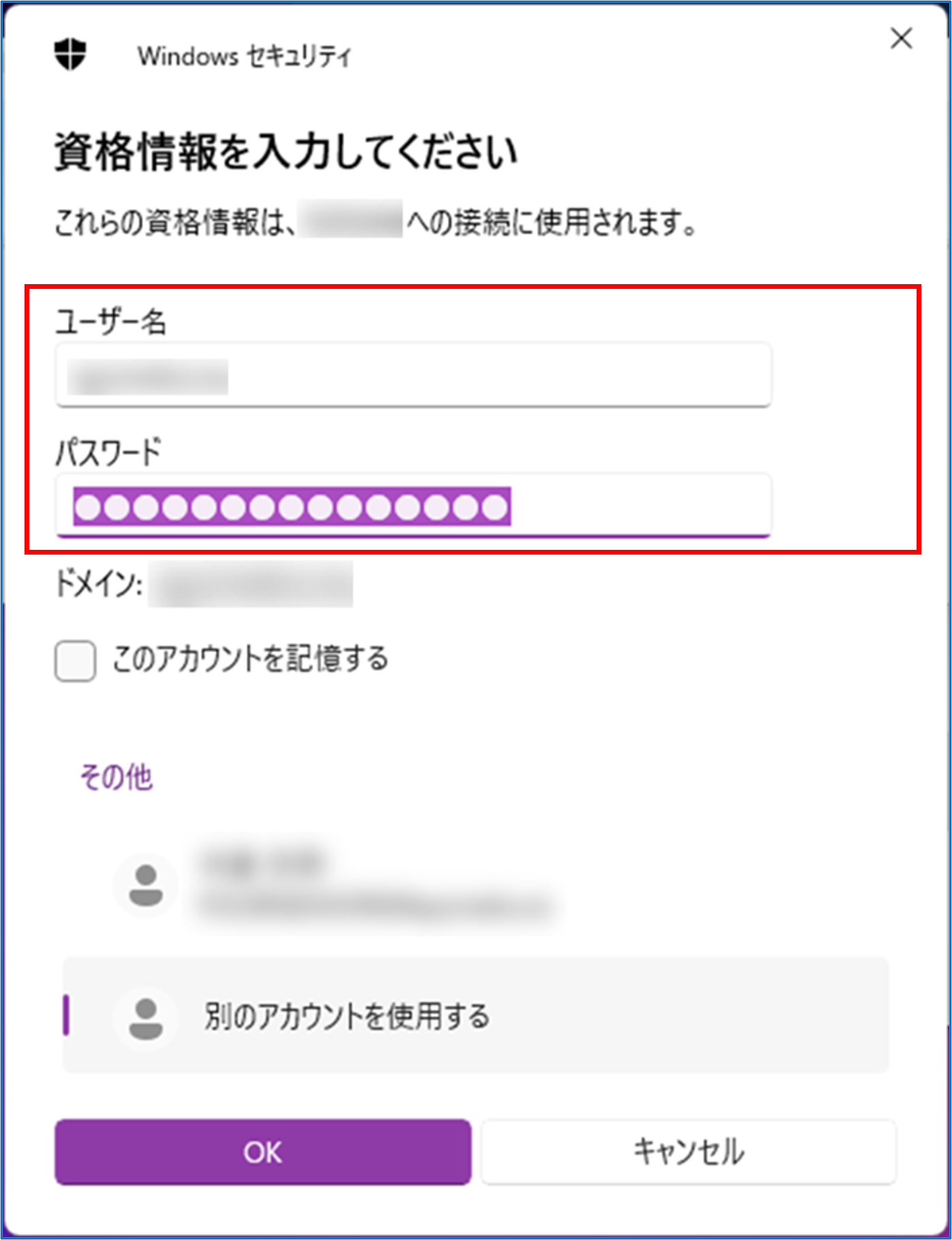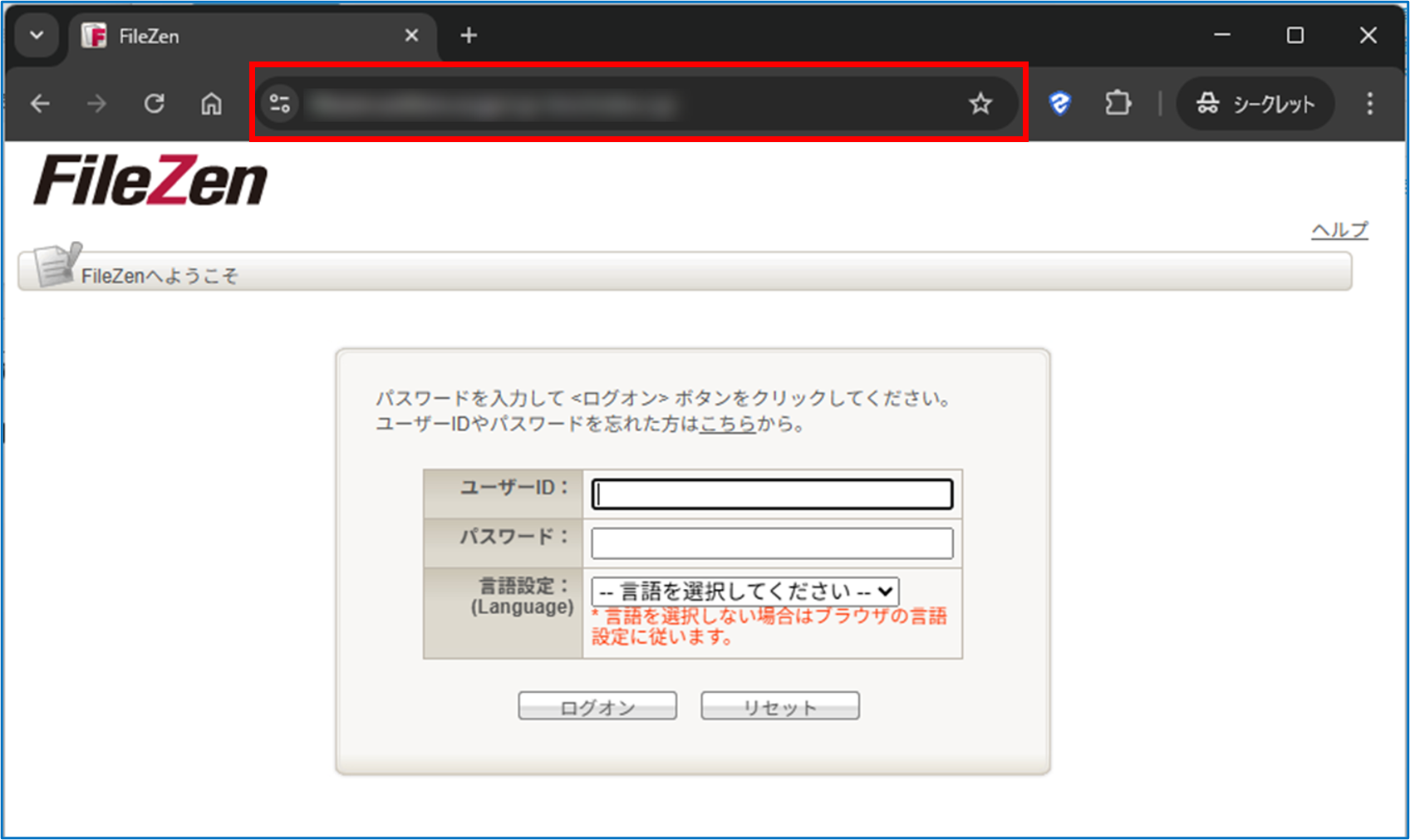 代理入力サインオンの設定を登録したログイン画面を表示すると、設定したユーザーID/パスワードなどが代理入力されます。