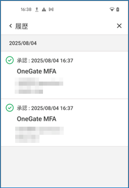 「アプリ設定」メニューの[履歴]をタップすると、Authenticator の履歴が確認できます。