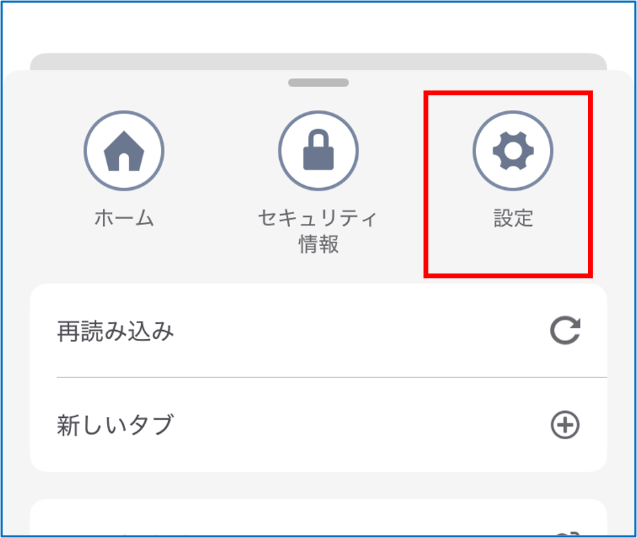 ブラウザーメニューの[設定]アイコンをタップする