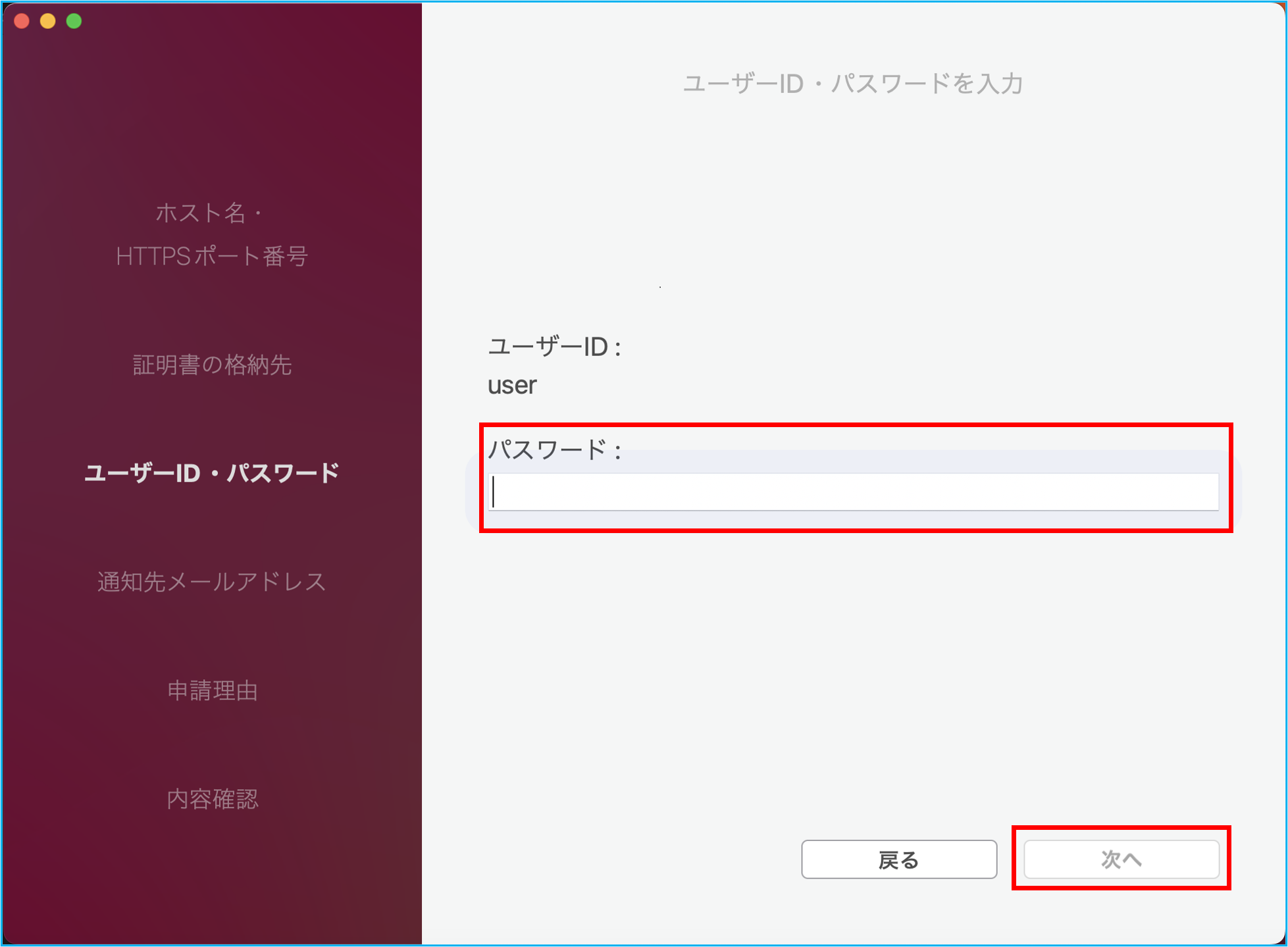 OneGateのパスワードを入力し、[次へ]をクリックする