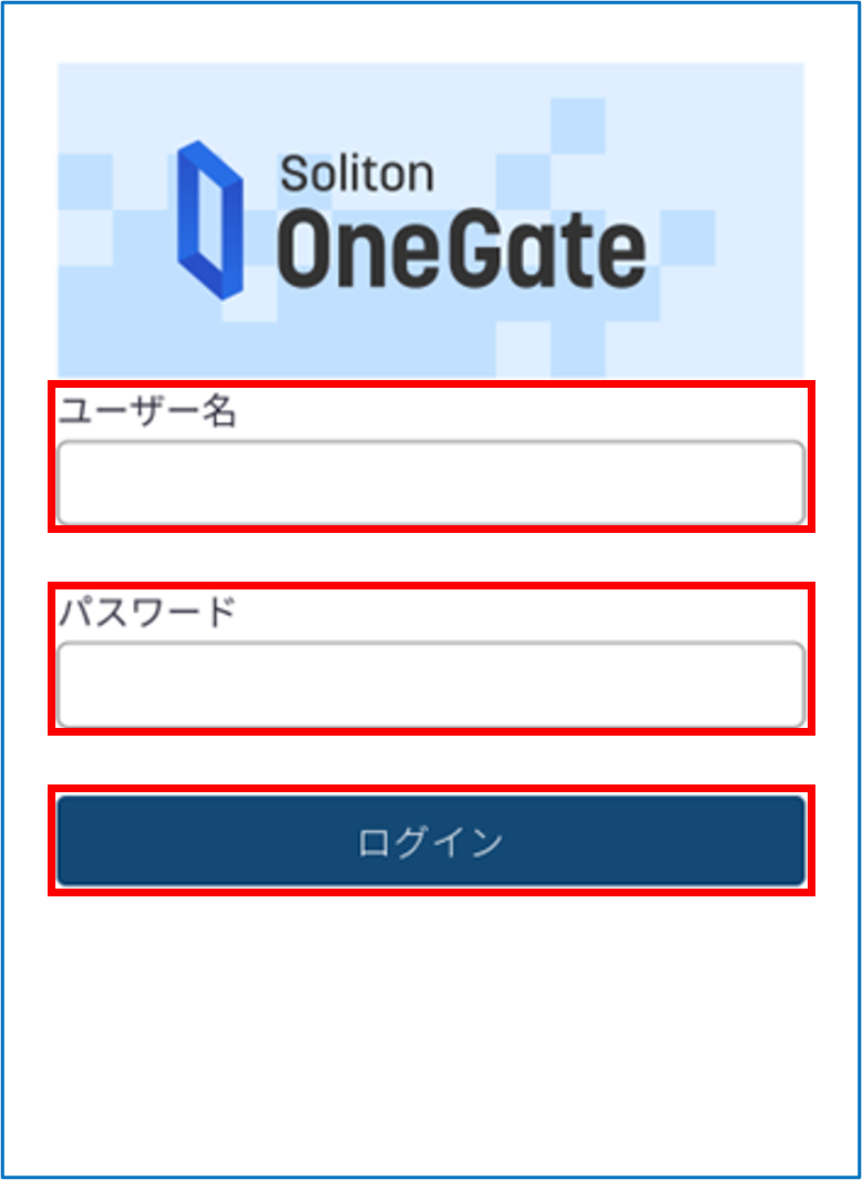 [ユーザー名]、[パスワード]を入力し、[ログイン]をタップする