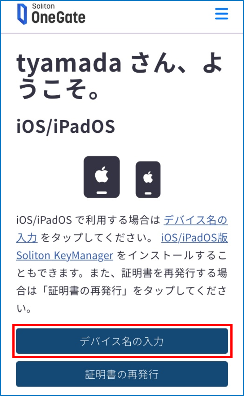 デバイス予約によってOS/iPad端末に証明書をインストールします。